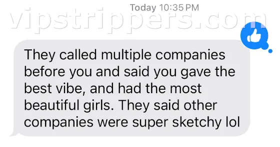 “Absolute great night in Killington, from the start Meni was very quick to respond and easy to deal with. We had a good group of guys for a bachelor party, and he recommended, Joey and Kiley for us. I have to say the pictures don’t do justice, they’re even SEXIER in person. Joey has an incredible body with an ass to die for, and Kiley is just straight sexy with a bad ass attitude. Despite the snow storm they arrived early and even called before they got there so I could surprise the bachelor. The shows were great and I def recommend paying a little extra for the duo show! I have to say that I will def be coming back if I ever need to plan another party.”